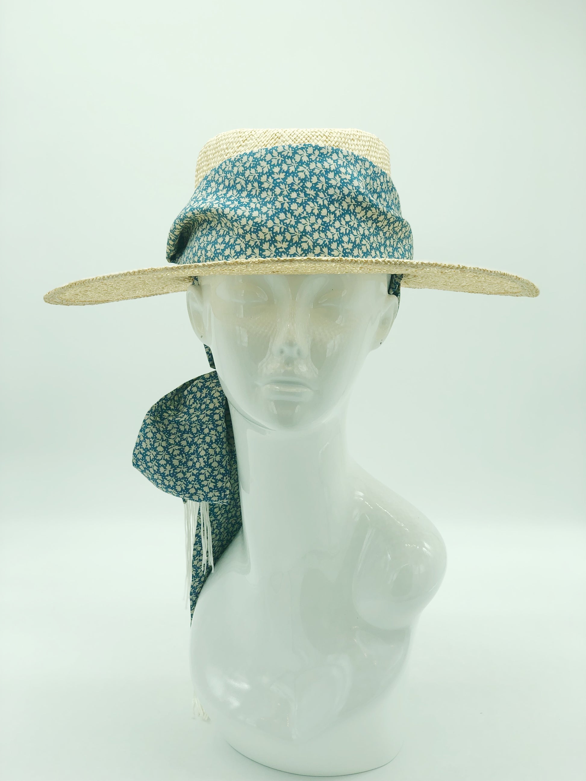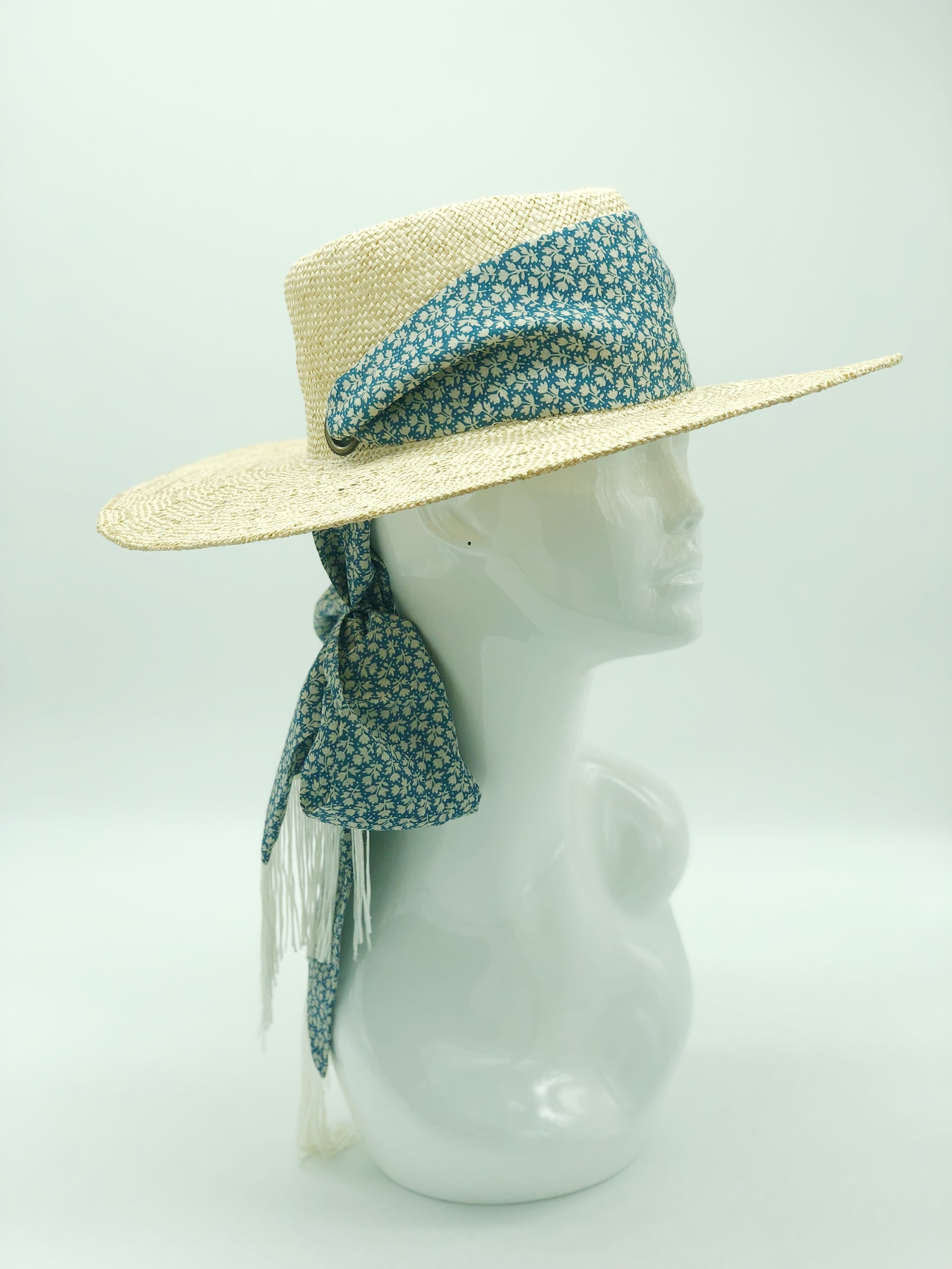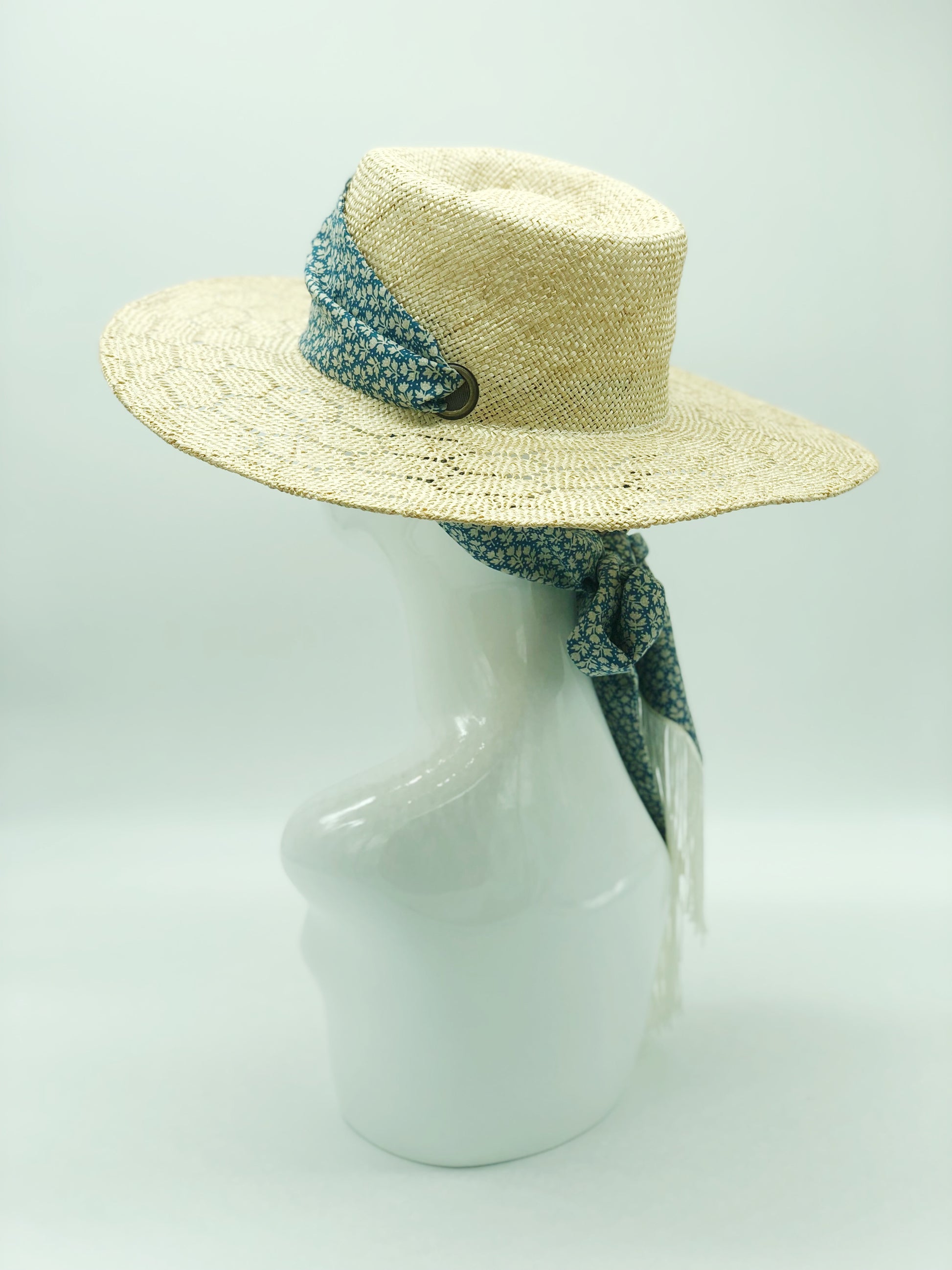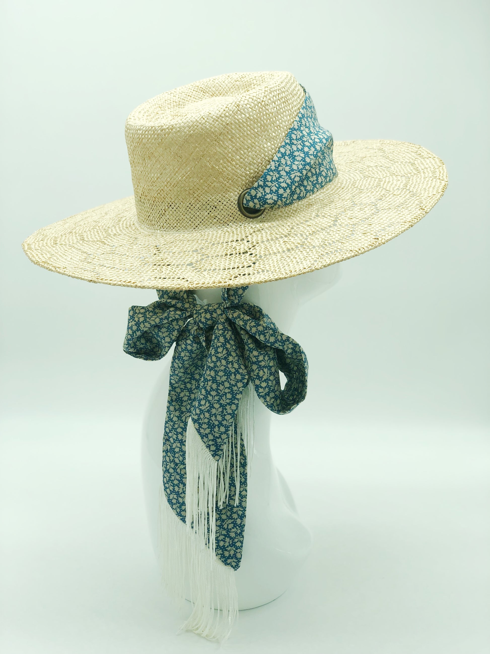 The Brigitta is the elevated Summer hat you've been looking for. The design features honeycomb straw and a fun summery scarf with fringe trim. Wear the scarf in a bow or knotted and over your shoulder to the beach or the races.